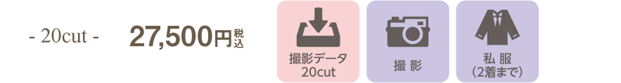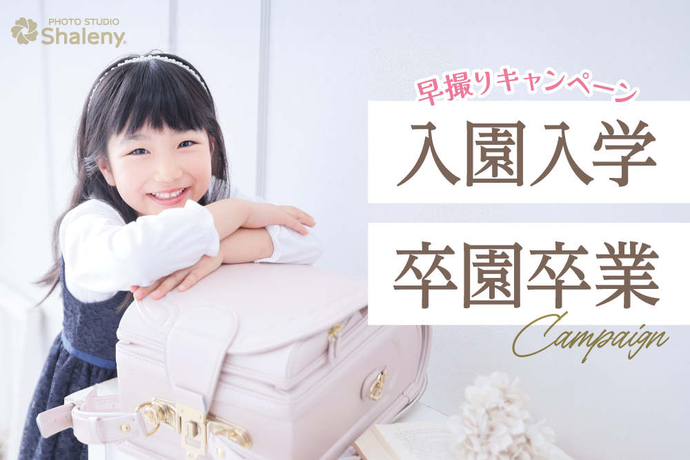 入園入学卒園卒業記念フォト【後撮りキャンペーン!】 2025.12.02キャンペーン お子様の節目のお祝いを写真に残そう!入園入学・卒園卒業はお子さまにとっての大切な新しい第一歩。制服やスーツ、通園バッグやランドセルで、記念にお写真を残しましょう!早撮りキャンペーン開催期間 2026年1月2日(金)~3月15日(日) 対象・保育園幼稚園の入園・保育園幼稚園の卒園&小学校入学・小学校卒業&中学校入学・中学校卒業&高校入学 キャンペーン特別プランキャンペーン中はとってもお得!通常撮影料 3,300円早撮りキャンペーン期間中なら全日半額 1,650円!※持込のスーツ・制服・ユニフォーム・私服での撮影になります。※衣裳ごと一人写しのお写真をご購入ください。※ランドセルはご持参ください。 お得な特典もついてきます!特典1家族写真撮影無料!パパ・ママ・兄弟・姉妹と一緒に撮影できます!ぜひご家族揃ってお写真を残してくださいね。※兄弟姉妹の衣裳は別途料金がかかります。※データ5カットプランは対象外です。 特典2卒園・卒業袴姿へお着替え無料!せっかくの記念日だから、普段着ない袴姿で可愛く、かっこよく撮影しませんか?ヘアメイク・着付もサービス!通常価格 3,300円(税込)/1着※44,000円(税込)以上のアルバムセットプランをお買い求めの方が対象です。※お着替えしたお写真は1枚以上ご購入をお願いいたします。 特典3パパママの着物レンタル&着付無料!通常価格 5,500円(税込)/1着※66,000円(税込)以上のアルバムセットプランをお買い求めの方が対象です。特典4平日撮影なら、スタジオ内スマホ動画撮影OK!撮影の思い出を動画に残してくださいね♪選べるセットプラン入園入学卒園卒業のお写真はアルバムやデータでしっかり残しましょう!下記よりお好きなプランをお選びいただけます。また、お写真やデータは1枚から購入も可能です。 【平日限定】データ5カットプラン撮影したお写真を手軽に残したいという方には5カットプランがおすすめです。 SNSでの使用や自分でプリントするなどお客様のお好みでお使いいただけます。 ご家族様やご親戚様へ撮影したお写真を簡単に共有できるのもデータならではの魅力。※1人撮影のみです。家族撮影はできません。※衣裳は1着のみです。※兄弟姉妹でまとめることはできません。 【平日限定】データ10カットプラン撮影したお写真をデータで残したいという方には10カットプランがおすすめです。 SNSでの使用や自分でプリントするなどお客様のお好みでお使いいただけます。 ご家族様やご親戚様へ撮影したお写真を簡単に共有できるのもデータならではの魅力。※兄弟姉妹でまとめることはできません。※洋装衣裳の追加は1着3,300円(税込)です。 データ20カットプラン撮影したお写真をデータでしっかり残したいという方には20カットプランがおすすめです。SNSでの使用や自作のアルバム作成などお客様のお好みでお使いいただけます。 ご家族様やご親戚様へ撮影したお写真を簡単に共有できるのもデータならではの魅力。※兄弟姉妹でまとめることはできません。※袴・洋装衣裳の追加は1着3,300円(税込)です。 ベーシックアルバム収録の修整済みデータ3カットとデータ20カットがセットになったプラン。表紙はブラックとホワイトの2色からお選びいただけて、すっきりとしたデザインは写真館ならではの仕上がりです。※兄弟姉妹で1冊にまとめることはできません。※衣裳の追加は1着3,300円(税込)です。 マイン アルバム収録の修整済みデータ5カットと撮影データ20カットがセットになったプラン。 表紙はふんわりとした素材を使用していて可愛い仕上がり。見開きの中は銀塩タイプで耐久性が高く色あせしにくいしっかりとした加工がされています。※兄弟姉妹で1冊にまとめることはできません。※衣裳の追加は1着3,300円(税込)です。 クローバーアルバム収録の修整済みデータ8カットとデータ20カット、ミニアルバムが付いた大人気プラン。表紙は5色からお選びいただけます。パパママ着物+着付と兄弟姉妹の衣裳も含まれていて嬉しいプランです。※兄弟姉妹で1冊にまとめることはできません。※衣裳の追加は1着3,300円(税込)です。※兄弟姉妹衣裳を和装で希望の場合、着付料金別途2,200円(税込)です。 ディアアルバムとミニアルバム、全データがセットになったプラン。キャンパスボードのようなぬくもりのあるかわいい1冊。アルバムのカバー付きで、カバーにも表紙と同じデザインが入ります。パパママ着物+着付と兄弟姉妹の衣裳も含まれていて嬉しいプランです。※兄弟姉妹衣裳を和装で希望の場合、着付料金別途2,200円(税込)です。写真を撮るなら今がチャンス!入園入学卒園卒業の記念を残すならキャンペーン中がオススメ!予約が埋まってしまう前に、お早めにお店にお問合せください!