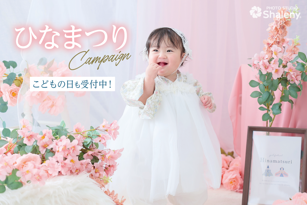 【ひなまつりフォト&こどもの日フォト】節句写真を残そう! 2025.12.01キャンペーン 大切な記念日「節句」を写真に残そう!女の子は3月3日に「ひなまつり(桃の節句)」、男の子は5月5日に「こどもの日(端午の節句)」を迎えますね。お子様の幸せを願い、節句のお写真を残しましょう✨ 開催期間 2026年1月2日(金)~6月30日(火) 対象年齢 2歳お誕生日まで キャンペーン特別プランキャンペーン中はとってもお得!〈撮影 + データ1カット〉3,300円さらに、平日撮影なら…半額 1,650円!お得な特典もついてきます!特典1家族写真撮影無料!パパ・ママ・兄弟・姉妹と一緒に撮影できます!ぜひご家族揃ってお写真を残してくださいね。※兄弟姉妹の衣裳は別途料金がかかります。※データ5カットプランは対象外です。特典2パパママの着物レンタル&着付無料!通常価格 5,500円(税込)/1着※66,000円(税込)以上のアルバムセットプランをお買い求めの方が対象です。特典3平日撮影なら、スタジオ内スマホ動画撮影OK!撮影の思い出を動画に残してくださいね♪ 全店でひなまつりセットが新登場!キャンペーン中なら、こんなにかわいいお写真が撮影できます🤍 選べるセットプランひなまつりフォト・こどもの日フォトのお写真はアルバムやデータでしっかり残しましょう!下記よりお好きなプランをお選びいただけます。また、お写真やデータは1枚から購入も可能です。【平日限定】データ5カットプラン撮影したお写真を手軽に残したいという方には5カットプランがおすすめです。 SNSでの使用や自分でプリントするなどお客様のお好みでお使いいただけます。 ※1人撮影のみです。家族撮影はできません。※衣裳は1着のみです。※兄弟姉妹でまとめることはできません。 【平日限定】データ10カットプラン撮影したお写真をデータで残したいという方には10カットプランがおすすめです。 SNSでの使用や自分でプリントするなどお客様のお好みでお使いいただけます。 ※兄弟姉妹でまとめることはできません。 データ20カットプラン撮影したお写真をデータでしっかり残したいという方には20カットプランがおすすめです。SNSでの使用や自作のアルバム作成などお客様のお好みでお使いいただけます。 ※兄弟姉妹でまとめることはできません。※衣裳の追加は1着3,300円(税込)です。 ベーシック+データ20カットアルバム収録の修整済みデータ3カットとデータ20カットがセットになったプラン。表紙はブラックとホワイトの2色からお選びいただけて、すっきりとしたデザインは写真館ならではの仕上がりです。※兄弟姉妹で1冊にまとめることはできません。※衣裳の追加は1着3,300円(税込)です。 マイン+データ20カットアルバム収録の修整済みデータ5カットと撮影データ20カットがセットになったプラン。 表紙はふんわりとした素材を使用していて可愛い仕上がり。見開きの中は銀塩タイプで耐久性が高く色あせしにくいしっかりとした加工がされています。※兄弟姉妹で1冊にまとめることはできません。※衣裳の追加は1着3,300円(税込)です。 クローバー+データ20カットアルバム収録の修整済みデータ8カットとデータ20カット、ミニアルバムが付いた大人気プラン。表紙は5色からお選びいただけます。パパママ着物+着付と兄弟姉妹の衣裳も含まれていて嬉しいプランです。※兄弟姉妹で1冊にまとめることはできません。※衣裳の追加は1着3,300円(税込)です。※兄弟姉妹衣裳を和装で希望の場合、着付料金別途2,200円(税込)です。 ディア+撮影全データアルバムとミニアルバム、全データがセットになったプラン。キャンパスボードのようなぬくもりのあるかわいい1冊。アルバムのカバー付きで、カバーにも表紙と同じデザインが入ります。パパママ着物+着付と兄弟姉妹の衣裳も含まれていて嬉しいプランです。※兄弟姉妹衣裳を和装で希望の場合、着付料金別途2,200円(税込)です。 写真を撮るなら今がチャンス!ひなまつりフォト・こどもの日フォトを撮影するならキャンペーン期間がオススメ!お子様の節句をしっかりお写真に残しましょう✨