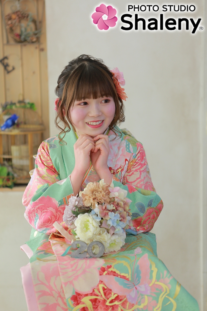 色白美人さん!グリーンの振袖がとてもお似合いです♫