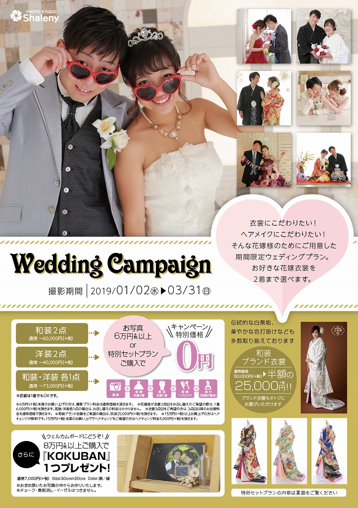 シャレニー佐久店 > ブログ > シャレニーウェディングキャンペーン♪♪ 2019/02/23 シャレニーウェディングキャンペーン♪♪ シャレニーでは3月末までウェディングキャンペーン開催させていただいてます♪♪ 結婚式の前撮りで♡ 式は挙げないけど写真で残したい♡ お子様も一緒に♡ なんでもおっけーです!!是非この機会にご予約下さい☆ モノクロ写真もとっても素敵☆ お二人の楽しそうな会話が聞こえてきそうですね♪♪ 自然体な笑顔をありがとうございます!! 洋装にお色直し♪♪ ガラッと変わってとっても素敵です!(^^)! 沢山の幸せをありがとうございました♪♪ お電話でのご予約 TEL:0120-667-402 WEBでのご予約